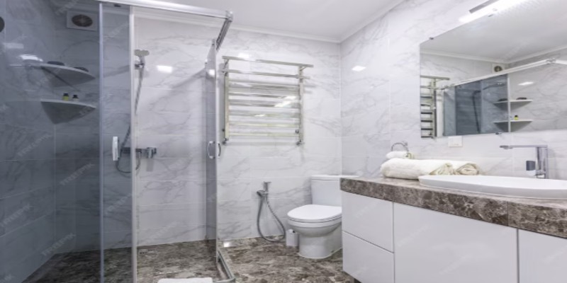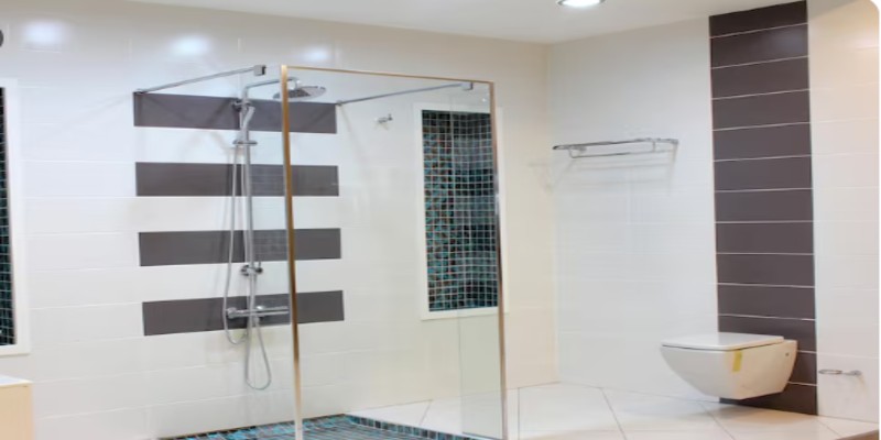 Spacious and Modern Design: Glass panels or partial walls replace bulky shower curtains, maintaining light flow and a modern aesthetic. The open layout creates a sense of space even in smaller bathrooms.